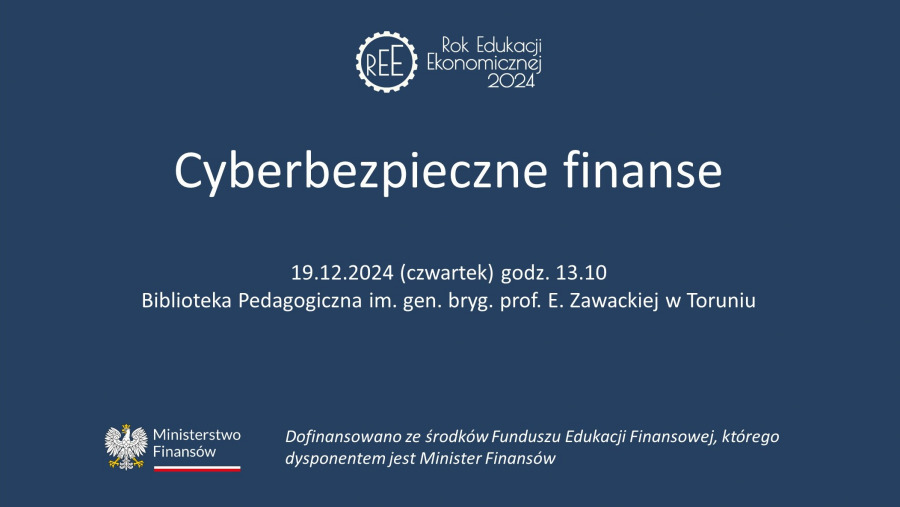 Serdecznie zapraszamy do udziału w warsztatach edukacyjnych pt. Cyberbezpieczne finanse, które odbędą się w najbliższy czwartek - 19 grudnia 2024 r., godz. 13:10-13:55. Zajęcia poprowadzi pan Marcin Wąsik-Wiszniewski - Regionalny Dyrektor Programów Edukacji Ekonomicznej, członek Zespołu ds. projektów edukacyjnych Warszawskiego Instytutu Bankowości.