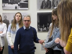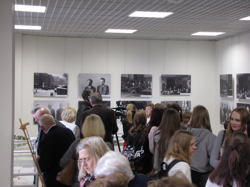 Goście z zainteresowaniem oglądali prezentowane na wystawie zdjęcia z okresu międzywojennego pokazujące m.in. pracownie lekcyjne, uroczystości szkolne, harcerskie i patriotyczne z udziałem uczniów i nauczycieli przedwojennego Gimnazjum Mikołaja Kopernika w Toruniu.