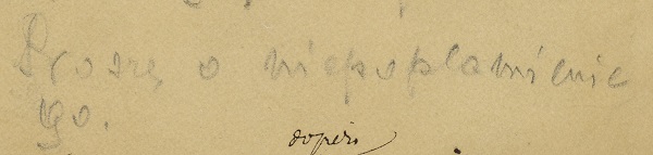 drukarzowi do składu: „Proszę o niepoplamienie go.” Dotyczy rękopisu rozprawy